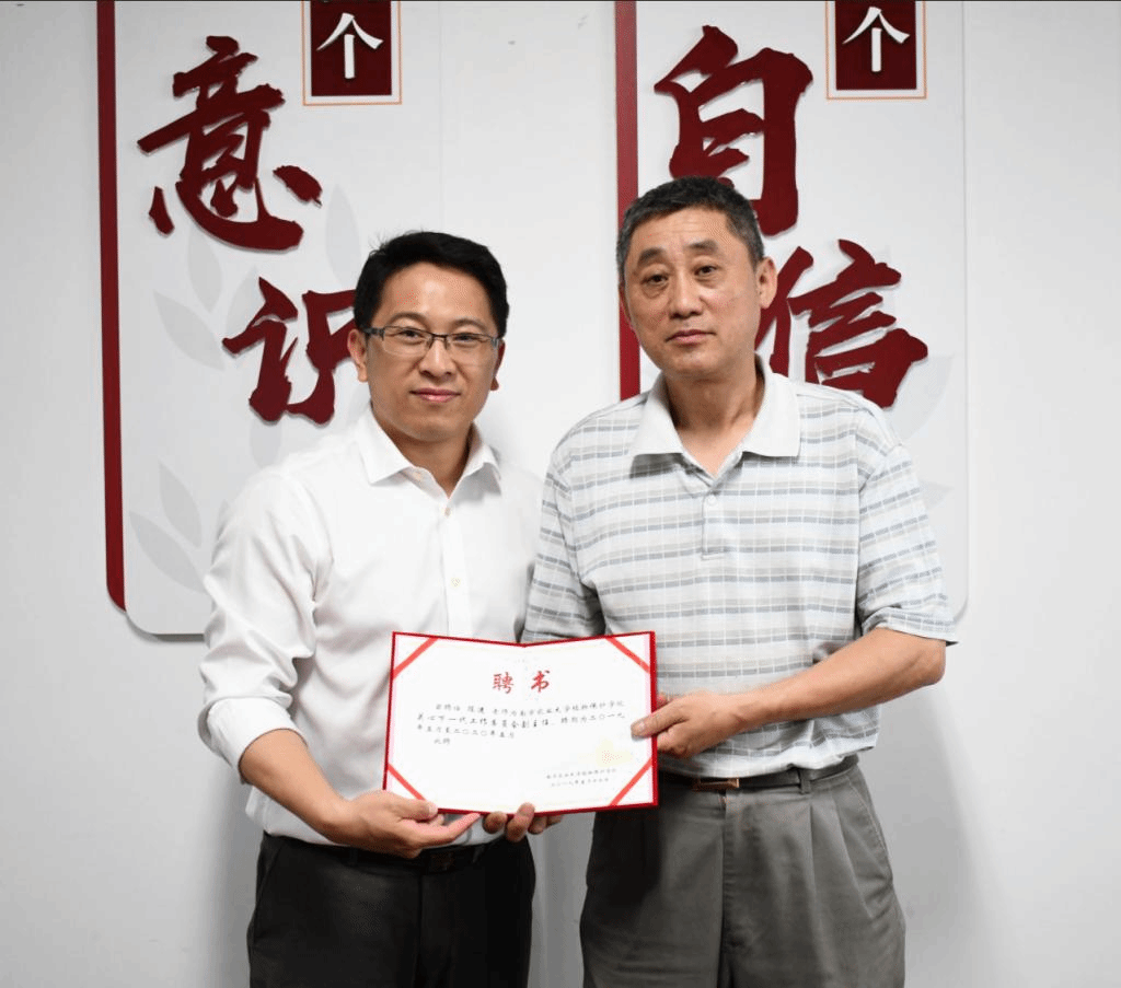 关心下一代工作委员会主任,吴耀清为委员会常务副主任,沈晋良、陈进为委员会副主任,王荫长、魏大为、文玲为委员会委员,汪越为委员会秘书。邵刚为老教授们颁发聘书。