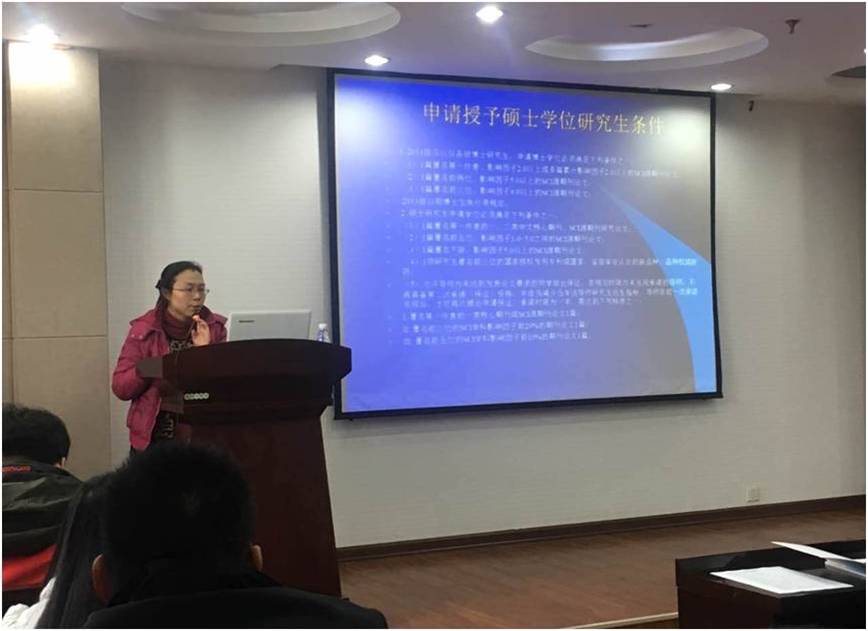 图为岳老师讲解申请授予硕士学位研究生的条件