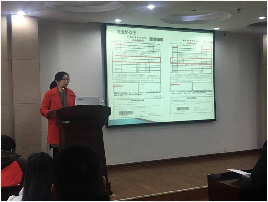 图为吴老师讲解就业协议书注意事项
