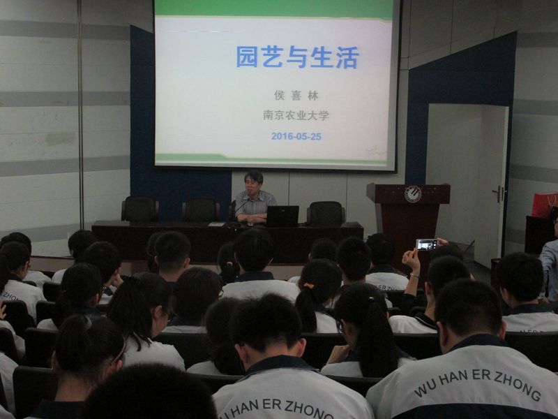 党委副书记黄绍华等与武汉二中校长汪寿光、副校长程磊进行交流座谈,侯喜林教授还应邀为中学生做了题为《园艺与生活》的科普讲座。