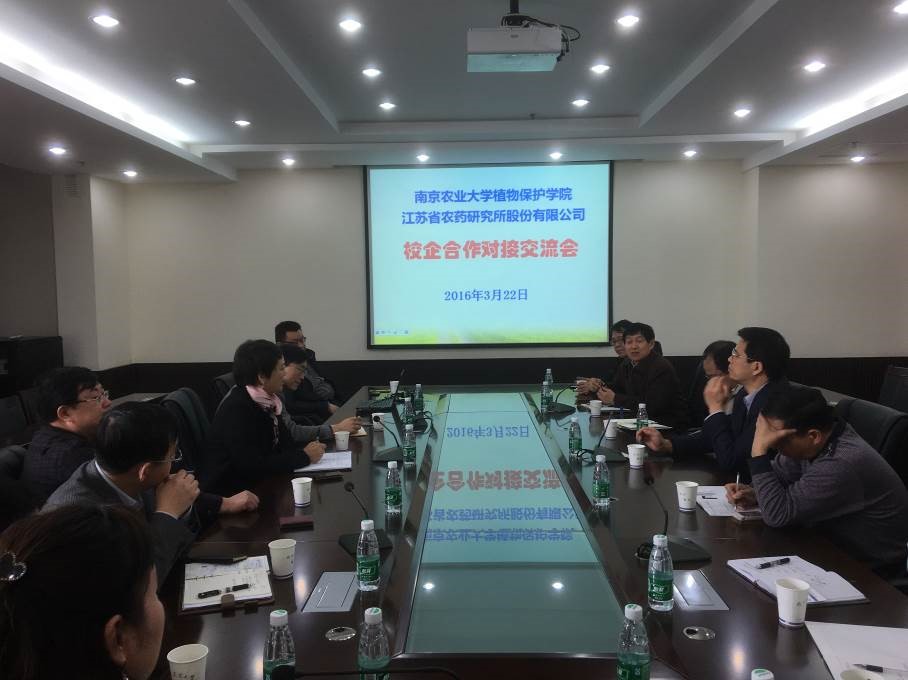 对江苏省农药研究所专家的到访表示欢迎,并介绍了植保学院的发展概况,特别肯定了双方长期合作的历史。曹杨总经理介绍了农药所的现状和发展规划,表示希望能够与植保学院在农药合成、生物测定、残留分析、新品种开发等方面进行全面合作。