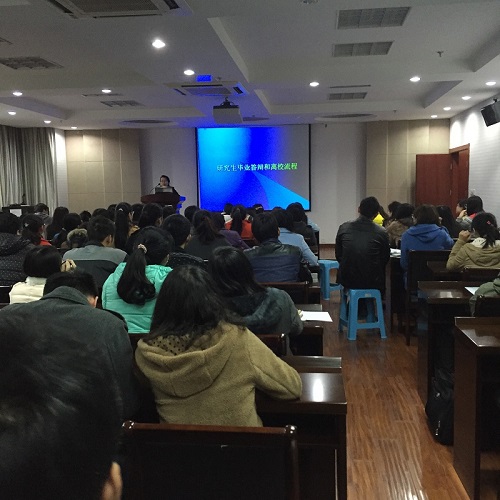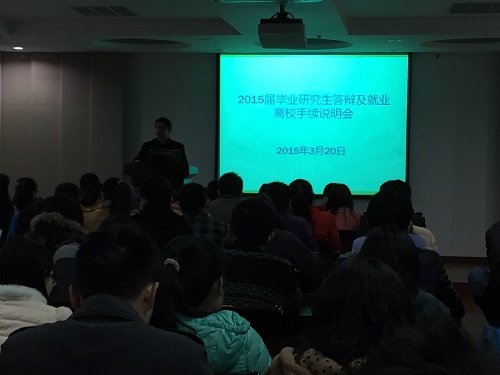 研究生分会主办的2015届毕业研究生答辩及就业离校手续说明会在理科C303举行。院党委副书记黄绍华、研究生辅导员吴智丹、研究生教务秘书岳丽娜为应届毕业生们带来了详尽实用的“毕业攻略”。      黄书记侧重于介绍今年的招聘情况,“求职攻略”告诫大家不要眼高手低,把握好方向,农业起薪虽然较其他行业偏低但努力工作也会有很好的前景。同时,黄书记还鼓励大家自主创业,响应两会号召,表示只要有好的创业或基层项目,学校和学院都会大力扶持的。此外,黄书记还提醒了一下毕业期间的安全问题,要大家注意外出安全和聚会安全。      吴老师就就业协议书、毕业相关表格的获取与提交进行了说明。“档案攻略”包括:报到证、就业协议书、档案和党组织的去向以及挂靠方式、户口等方面。吴老师逐条进行了讲解,力保大家做好走上工作岗位的准备工作。同时,吴老师还指导应届毕业生们如何查询档案动向、如何查询研究生就业相关网站。吴老师给研究生组建了QQ群,方便大家相互交流工作上的心得并联络感情,这也是老师给植保院每个学生的财富。      岳老师就博士毕业生和硕士毕业生的毕业答辩流程以及相关问题进行了讲解。“答辩攻略”包括:论文抽检时间,如何获取毕业相关表格以及如何正确填写、论文写作须知、获得学位证的文章要求、如何正确处理文章接受与学位证之间的时间冲突等等使用的提醒。      植保院研究生大家庭人数众多,老师们作为守护者,对每一位毕业生都抱有期盼,希望植保院走出来的每一位研究生都拥有最美好的未来,过上自己最幸福的人生。