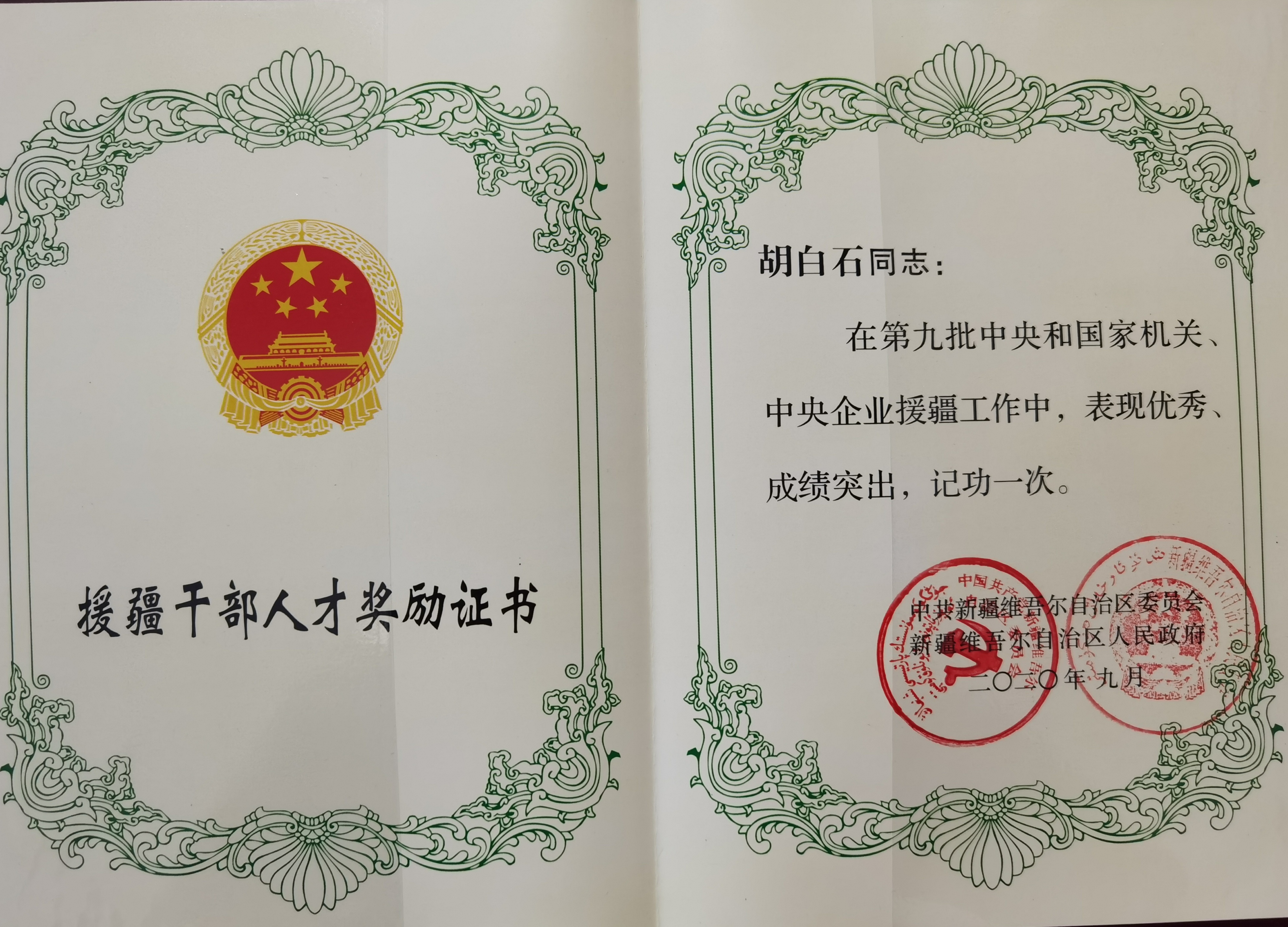 心之所系、情之所牵。在即将结束援疆之时,胡白石教授已申请继续加入第十批援疆干部人才队伍,继续为热爱的家乡做更多、更大的贡献。