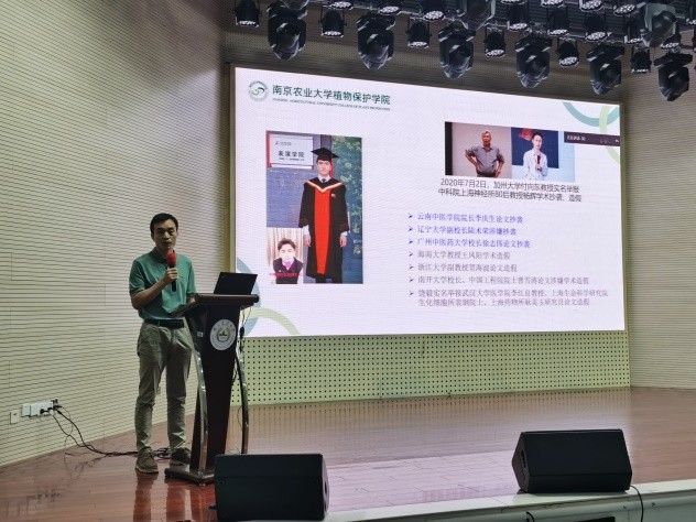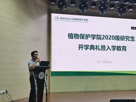 邵刚作总结致辞,他结合学科特色对研究生新生如何适应研究生阶段的科研生活提出三点建议:一是要明确“靶标”,寻找努力的“路径”;二是要正确看待“逆境”,不断提高“抗性”;三是师生之间“互作”,达到和谐“共生”。