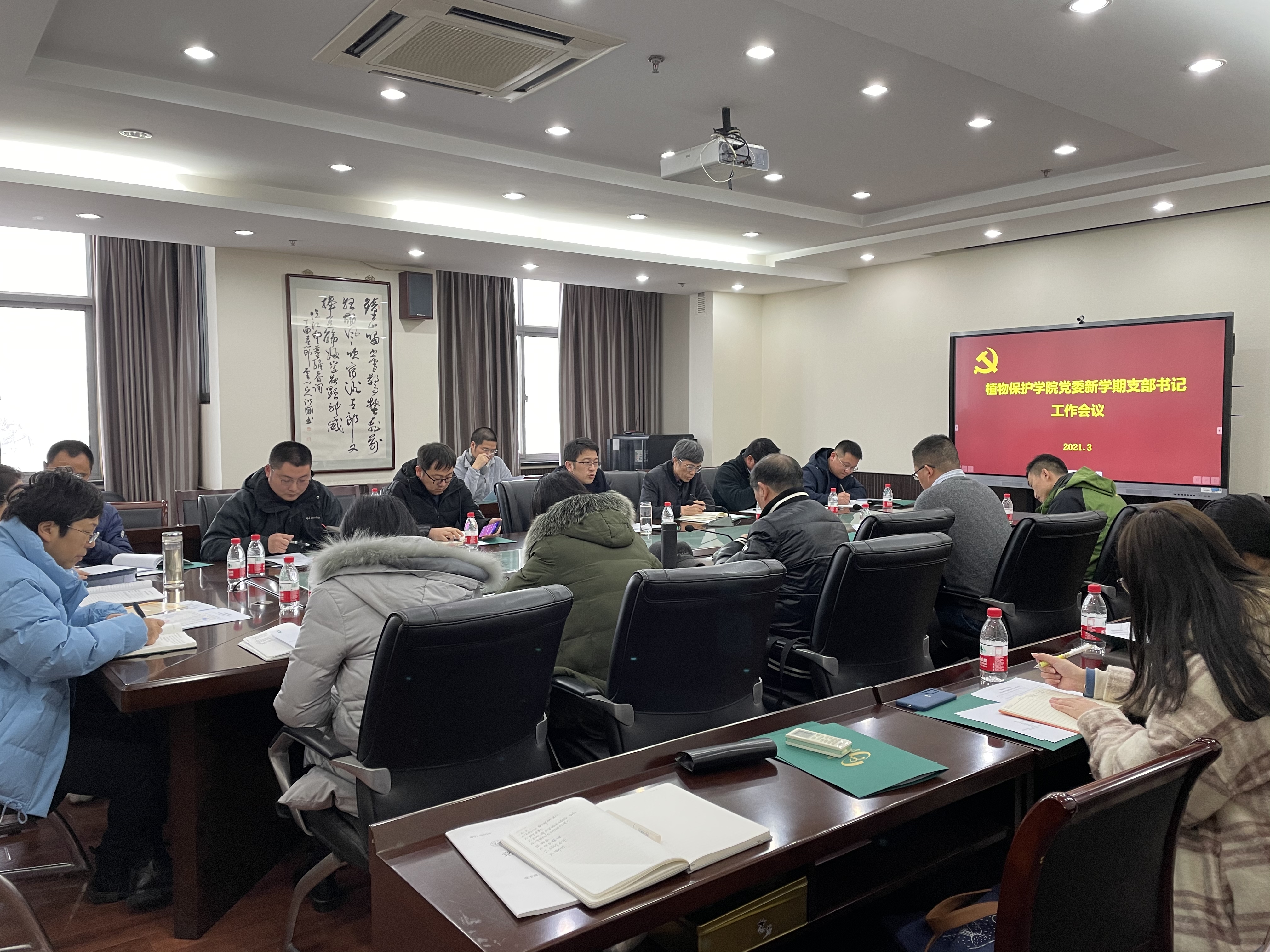 近日,植保学院党委在理科楼C306召开全体党支部书记会议,动员部署党史学习教育以及2020-2021第二学期党建工作。院党委书记邵刚主持会议。