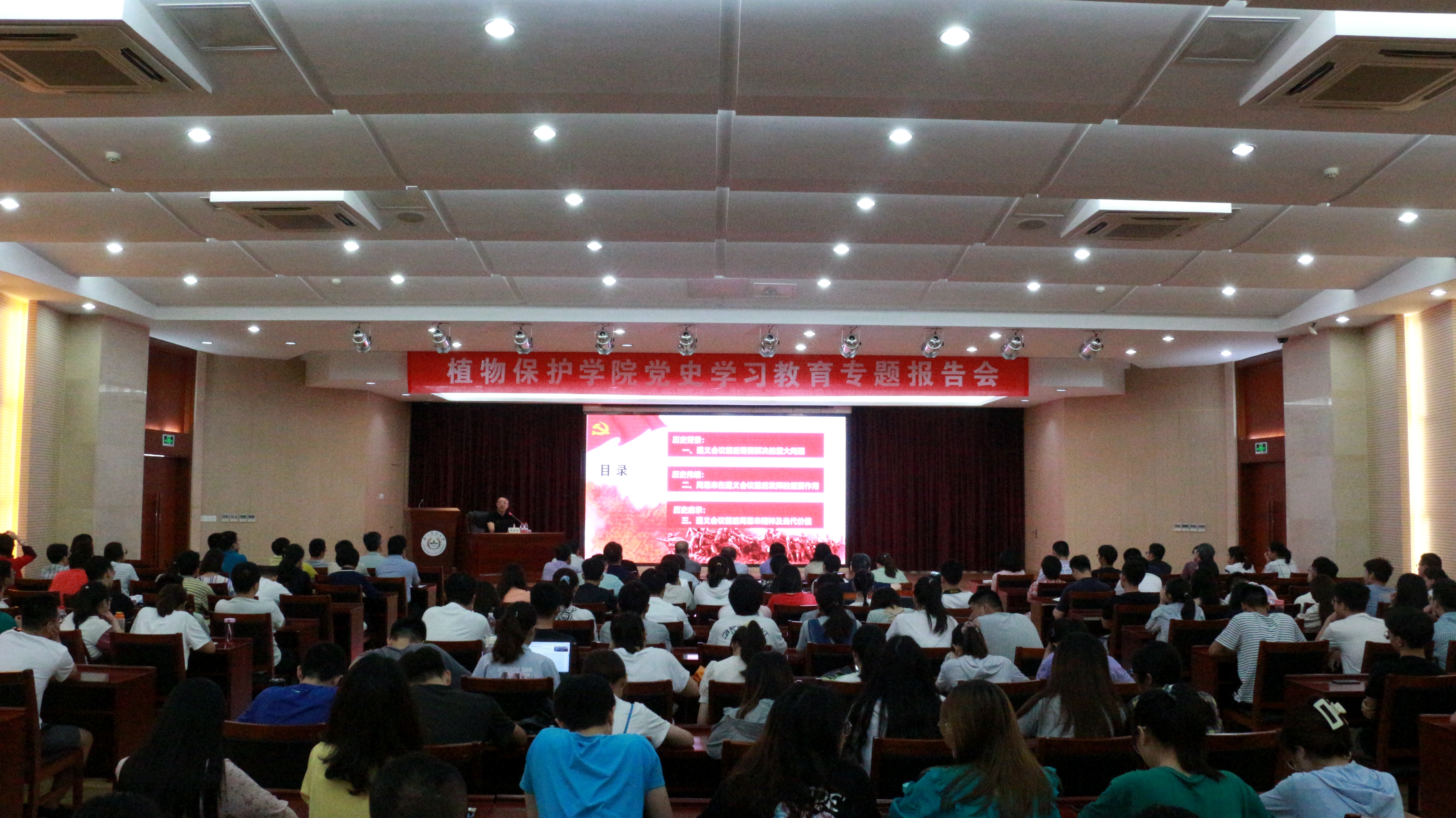 ,作题为“遵义会议前后的周恩来及其精神启示”的党史学习教育专题报告。全体学院领导、教师党员及学生党员代表等参加会议,院党委书记邵刚主持报告会。