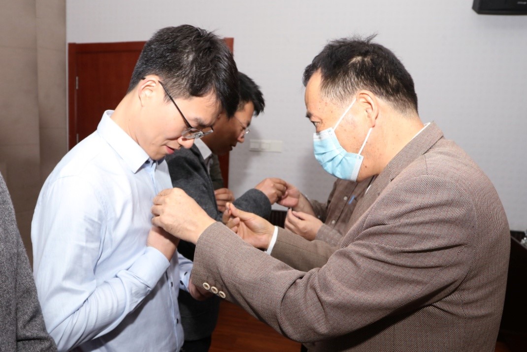 近一年新入职的10位青年教师邵小龙、李刚、何亚洲、陈金奕、张进、高云昊、杨雷云、唐莉栋、吴淑鸿、艾干依次作自我介绍,荣休教师代表郑小波、韩召军、翟保平、张春玲老师分别为新教师佩戴校徽。新教师进行了入职宣誓仪式,他们紧握右拳,庄严许下一名人民教师的神圣承诺!