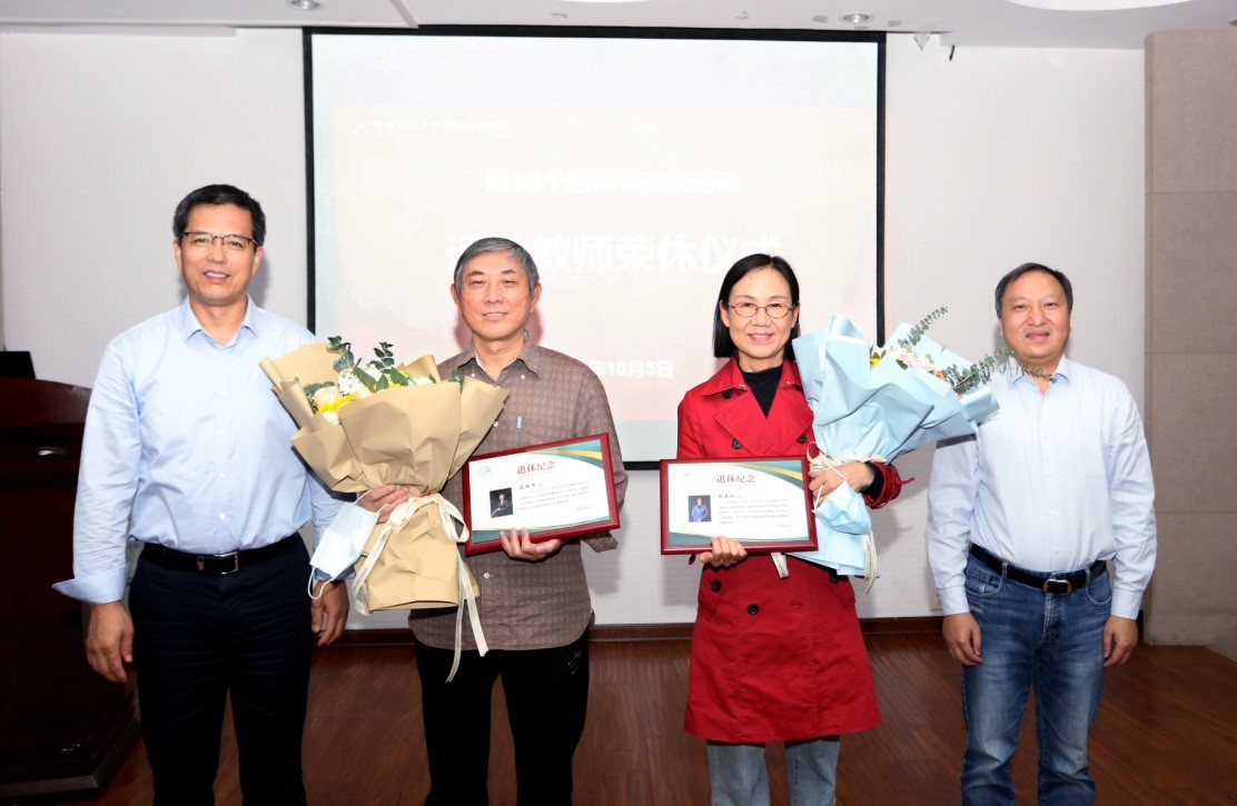 隆重举行“立德树人 薪火相传” 退休教师荣休仪式与新教师入职仪式,并表彰光荣在岗10周年、20周年、30周年、40周年教师。活动由学院党委书记邵刚主持。