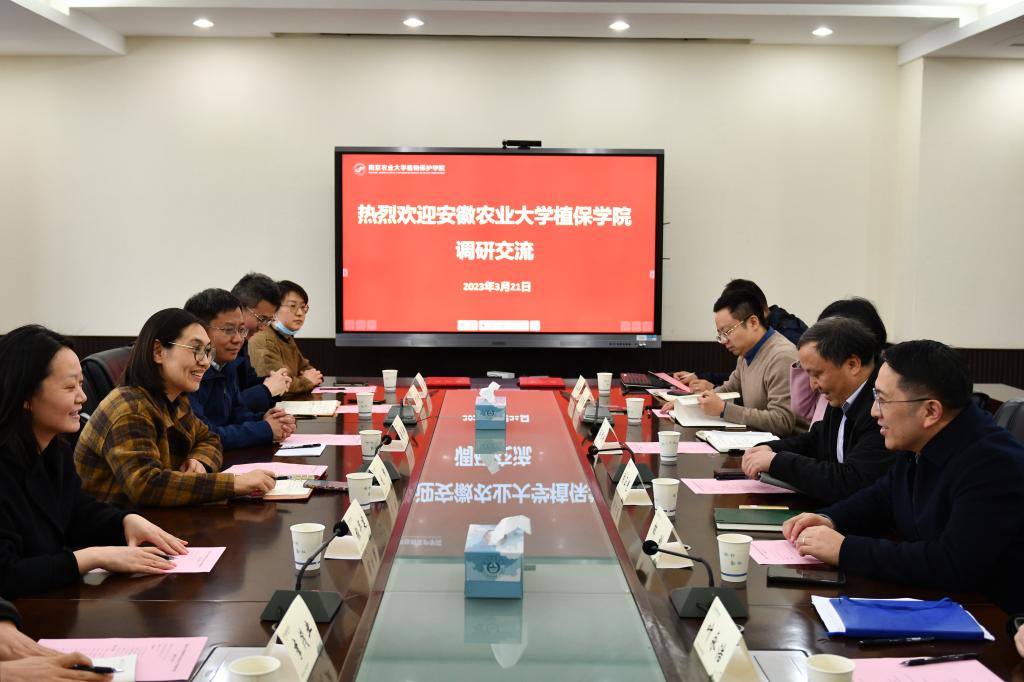学院党委书记邵刚对安徽农业大学植保学院的来访表示热烈欢迎,对两院长期以来的密切交流表示了诚挚的感谢。学院院长张正光从历史沿革、教学科研、人才培养、社会服务以及国际交流合作几个方面对学院基本概况进行了详细的介绍。
