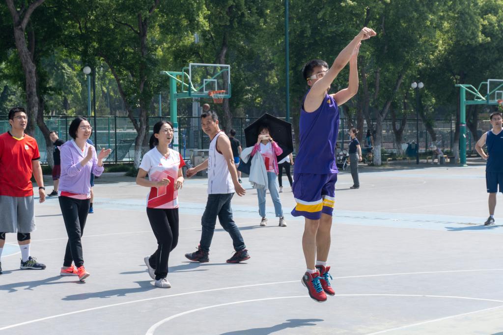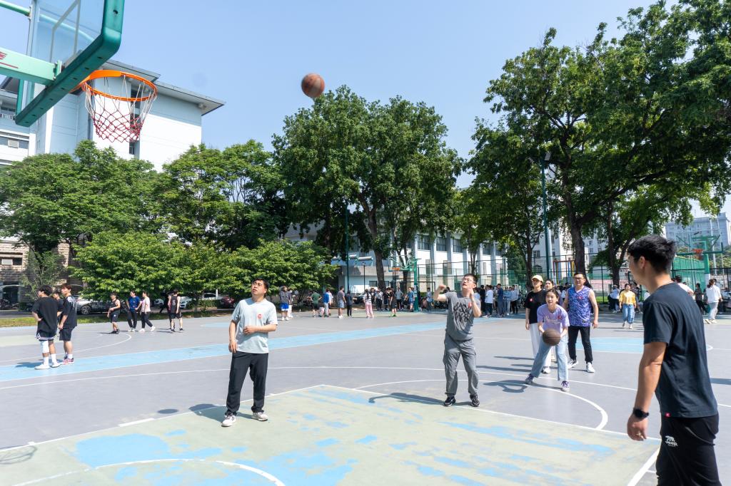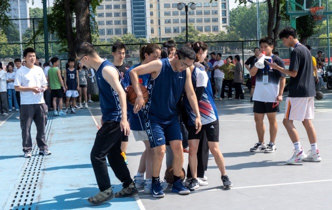 在篮球场举办“党团先锋争模范,篮球运动夺风采”党团支部趣味篮球赛。学院教师党支部、研究生党支部和本科生团支部共计17支队伍170余名师生参加本次活动,比赛现场热闹非凡。