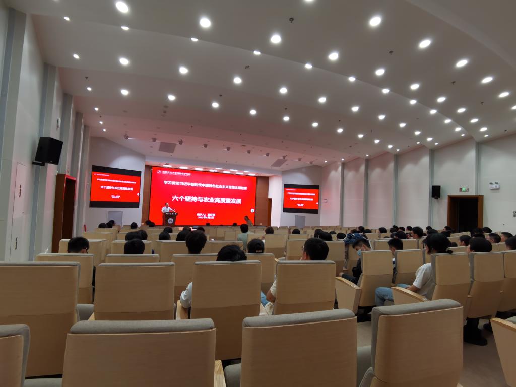 副院长董莎萌为联系党支部讲授《六个坚持与农业高质量发展》专题党课,他表示未来学科发展要对标“六个必须坚持”,聚焦真问题、找准自己位置,科学谋划布局;要跳出固有格局,推动“双循环”的组织格局,统筹学院大循环和个人小循环,开展“有组织”的科研,推动学科与教师双发展。
