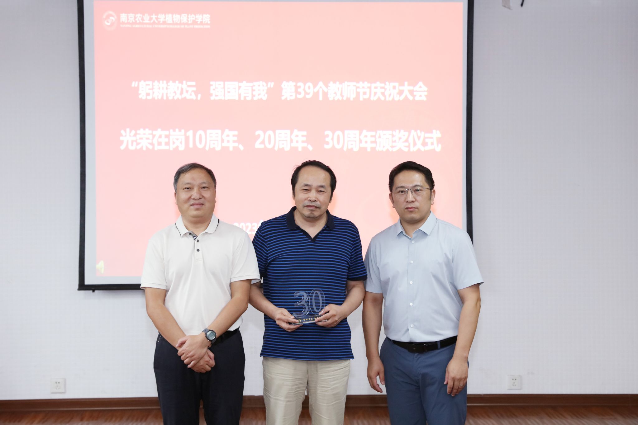 为探索建立植保学院教师荣誉体系,营造尊师重教良好氛围,学院在陆家云奖教金中设立光荣在岗10周年、20周年、30周年、40周年荣誉。每年举行一次,今年是第三年。