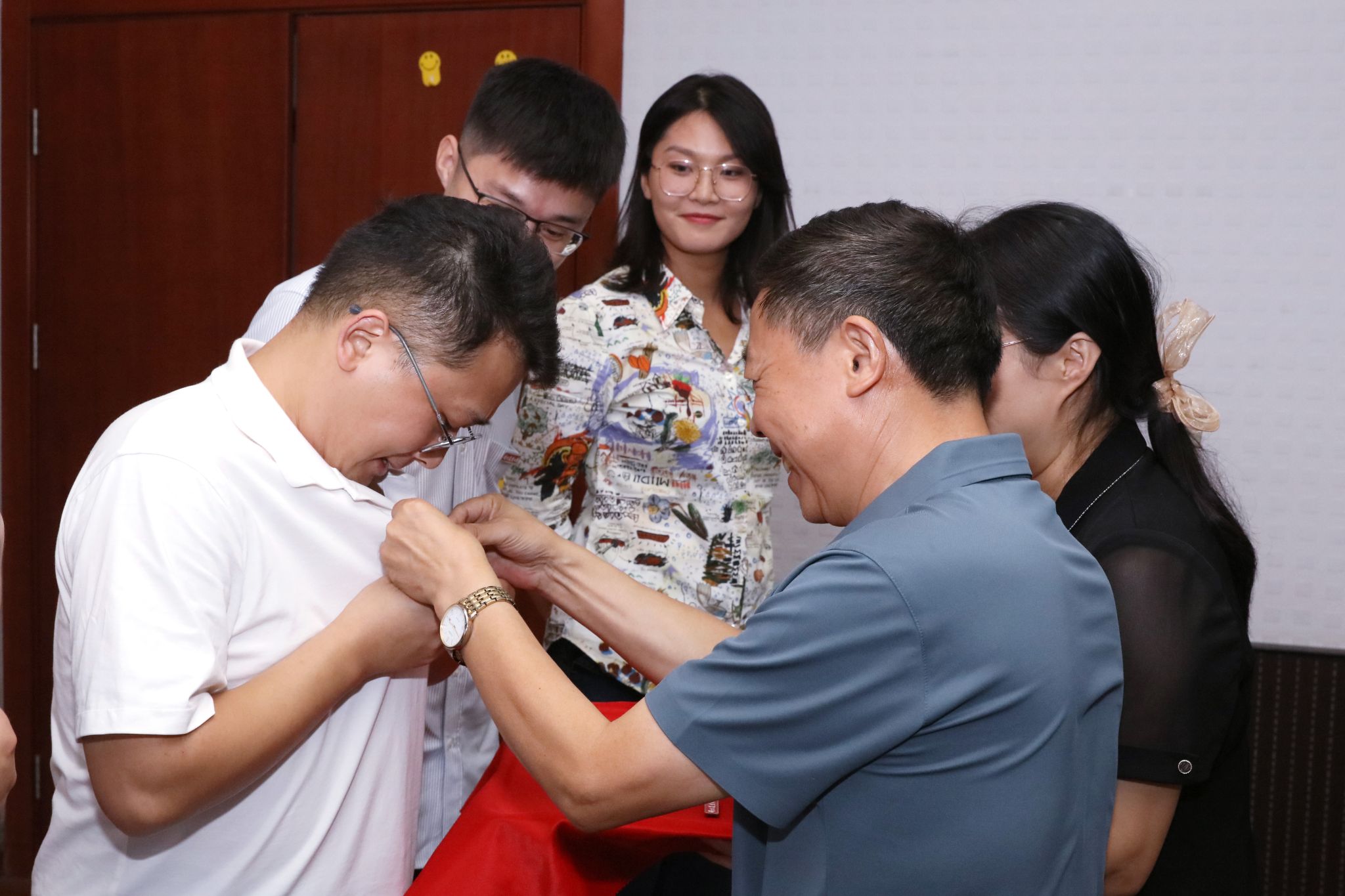 近一年新入职的青年教师依次作自我介绍,农药系董立尧教授、昆虫系吴益东教授、植病系高学文教授分别为新教师佩戴校徽。新教师进行了入职宣誓仪式,他们紧握右拳,庄严许下一名人民教师的神圣承诺!